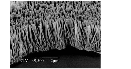 納米ZnO是一種重要的光催化材料,具有成本低廉、生物相容性較好和電子傳遞特性較高的優(yōu)點(diǎn),因此在太陽能電池、傳感器、光電器件等方面都有廣泛應(yīng)用。本實(shí)驗(yàn)采用水熱合成法定向生長ZnO納米線并用原子力顯微鏡(AFM)和掃描電鏡(SEM)對其進(jìn)行了表征,結(jié)果如圖2和圖3所示。