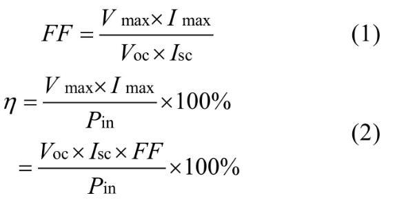 其中Vmax和Imax為最大輸出功率時對應(yīng)的電壓和電流,Pin為入射光強(qiáng)。