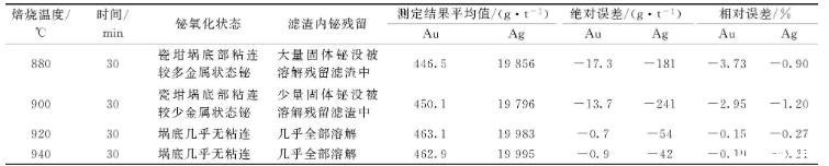 為了配合后面用酸除鉍,首先把鉍氧化,這樣再和酸反應的時候比較容易,用金含量463.8 g/t,銀含量20 037 g/t的粗鉍進行鉍氧化實驗,結果見表3。從表3可知920℃鉍氧化已經比較完全,全部可以溶于酸,結果穩定性也較好,因此選擇920℃。