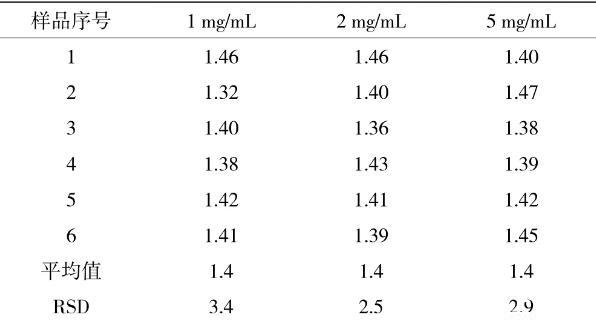 表5重復性試驗結果