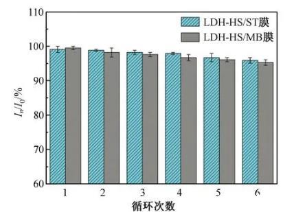 LDH-HS/染料復合膜酸致變色循環(huán)使用性分析