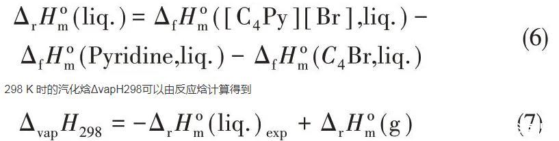 這些數(shù)據(jù)與Kabo等[40]使用Knudsen滲出法獲得的數(shù)據(jù)非常一致,但低于Santos等[43]使用微量熱法測量的蒸發(fā)熱。總而言之,他們認為離子液體以離子對的形式蒸發(fā),而汽化熱主要取決于液相和氣相離子對之間的庫侖相互作用。