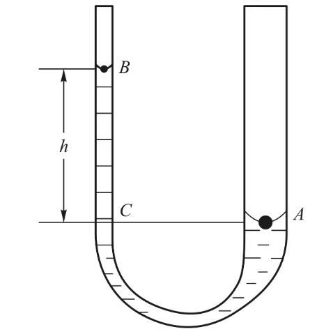 pc為液面下C點處的壓強。此外,在流體靜力學中,當液體靜止時U型管內液面下A點與同水平面的C點壓強相同,即Pa=Pc.所以綜合以上各式可得
