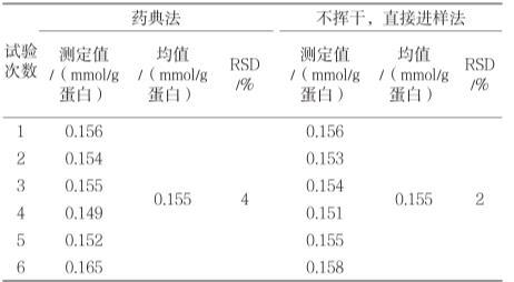 表2重復(fù)性試驗結(jié)果(n=6)