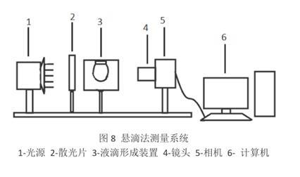 懸滴法的原理是利用液滴靜止懸掛在毛細(xì)管的管口處時,液滴的外形主要取決于重力和表面張力的平衡。通過測定懸掛著的液滴的外形參數(shù),可推算出液體表面張力。懸滴法的測量試驗(yàn)系統(tǒng)主要由光源、散光片、液滴形成裝置、鏡頭、相機(jī)、計算機(jī)等組成。測試步驟也很簡單,不需要清洗儀器,制樣完成后,接通電源,調(diào)節(jié)控溫器使溫度達(dá)到預(yù)設(shè)溫度點(diǎn)。將裝好試樣的石英比色皿和注射器置于恒溫室中,針頭必須保持垂直。一般液體恒溫時間為 30 min。控制注射泵進(jìn)樣成滴,當(dāng)液滴接近最大直徑時,按動快門,記錄液滴圖像,將攝影膠片印制成圖像。該檢測方法表面張力測定精度也是±0.1% 。此外要注意管尖的口徑不能過大以致生成大懸滴,溫度波動會產(chǎn)生對流和振動,使懸滴不穩(wěn)定。