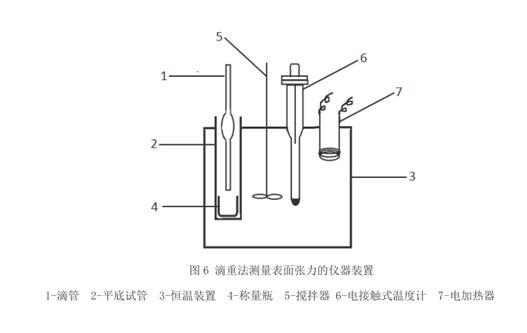 滴重法是利用液滴重量與支持它的表面張力的力相平衡進(jìn)行測定的試驗(yàn)。主要也是因?yàn)楸砻鎻埩εc液滴重量、滴管半徑、液體密度及重力加速度相關(guān)。滴重法要使用到的儀器主要玻璃滴管、恒溫裝置、平底試管、稱量瓶、攪拌器、電接觸式溫度計、電加熱器等。試驗(yàn)步驟也是先配置測定溶液,清洗測量儀器,然后安裝好實(shí)驗(yàn)裝置,啟動攪拌器,調(diào)節(jié)接觸溫度計,至所需溫度,使水恒溫半小時,要求普通溫度計的誤差不超過±0.5 ℃。恒溫足夠時間以消除平底試管內(nèi)與水溫的差,一般溫差小于 1 ℃。用分析天平稱得潔凈干燥的稱量瓶空瓶重。放入浸入恒溫裝置的平底試管內(nèi)。將橡皮管套于移液管的未加工端,用吸球?qū)⒋郎y液吸入移液管內(nèi),用夾子夾住橡皮管不使待測液滴下然后將移液管垂直懸掛入恒溫裝置內(nèi)的試管中,但不可與稱量瓶接觸。恒溫半小時后,慢慢旋開夾子,讓液體自然滴下,調(diào)節(jié)水滴的下落速度至每滴 100-120 s。至20 滴時擰緊夾子,取出移液管。將稱量瓶稱重,減去空的稱量瓶重量,求得每液滴的重量。在同一溫度下重復(fù)兩次。對于表面張力能隨時間迅速變化的或者界面能夠迅速相互飽和的界面,測定精度為±0.1%。