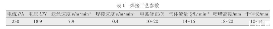 采用CMT一元化焊接工藝,通過正交試驗確定主要影響因素,焊接規范參數如表1所示。