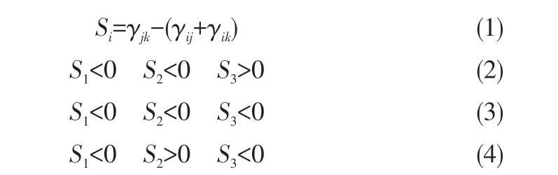 氣液液微分散技術(shù)在萃取分離領(lǐng)域的應(yīng)用是本文的重點關(guān)注對象,通常氣相作為內(nèi)相,萃取劑為中間相,低濃度稀土離子的水溶液為連續(xù)相。對于不同體系,最終所形成的氣液液三相流流型由三相界面張力關(guān)系決定。根據(jù)三相界面張力Torza等引入了鋪展系數(shù)[式(1)],若鋪展系數(shù)滿足式(2),該體系可形成水包油包氣中空液滴結(jié)構(gòu);若鋪展系數(shù)滿足式(3),該體系可形成Janus結(jié)構(gòu);若鋪展系數(shù)滿足式(4),油滴和氣泡將互相分離。對于常見的氮氣/P507萃取劑/稀土離子鹽酸水溶液體系,該體系界面張力關(guān)系滿足式(2),可形成穩(wěn)定的水包油包氣結(jié)構(gòu)。連續(xù)相的稀土離子與中間相的萃取劑在界面接觸發(fā)生反應(yīng),實現(xiàn)了稀土離子從水相到有機(jī)相的傳質(zhì)。在該過程中氣體的引入有兩個獨特優(yōu)勢:一是中空微液滴的形成增大了傳質(zhì)比表面積,加快反應(yīng)速率;二是與油滴相比中空微液滴的密度大大減小,因此可加速分相。與液液萃取相比,氣液液微分散萃取技術(shù)具備傳質(zhì)快及易分相的特點,有望解決大相比萃取過程中萃取效率低、易乳化等問題。