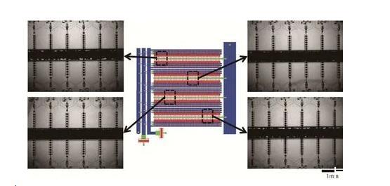 目前制約微流控技術(shù)實際應(yīng)用的重要因素是其處理通量低,無法滿足實際工業(yè)生產(chǎn)的需求。以上述微通道中萃取稀土離子為例,該過程連續(xù)相的流量僅為4mL/min,顯然不能滿足大量浸礦廢水處理的需求。目前關(guān)于微萃取設(shè)備的放大主要有兩種途徑。其中,微通道并行放大是大規(guī)模生產(chǎn)乳液和氣泡的一種常用可靠途徑。Jeong和Chen等設(shè)計了一種并行聚焦流微通道用來制備氣液液雙乳液,實現(xiàn)了在10cm×10cm的PDMS上并行了400個聚焦流微通道(圖7)。雙乳液的生產(chǎn)通量可達(dá)3L/h,可在1h內(nèi)制備1011個高度單分散的中空液滴。利用該設(shè)備進(jìn)行稀土離子的萃取結(jié)果表明相比于單一微通道結(jié)構(gòu),該設(shè)備的處理通量提高了10倍,且稀土離子的萃取率可在數(shù)秒內(nèi)提高至98%以上。本文作者所在的研究團(tuán)隊發(fā)明的膜分散微萃取設(shè)備同樣可以實現(xiàn)微通道萃取設(shè)備的有效放大,對于膜分散微萃取設(shè)備,其分散介質(zhì)為含有眾多規(guī)則排列微孔的不銹鋼薄膜,每個微孔相當(dāng)于一個微通道,其處理量可提高到200mL/min;該團(tuán)隊進(jìn)一步發(fā)明多通道膜分散微結(jié)構(gòu)設(shè)備,已經(jīng)成功應(yīng)用到萬噸級/年處理量的氣體吸收和液液萃取過程,為稀土萃取回收過程放大提供了堅實的基礎(chǔ)。從氣液液微分散萃取過程的放大研究進(jìn)展來看,處理通量已經(jīng)不再成為制約其發(fā)展的問題,多通道膜分散微萃取設(shè)備有望實現(xiàn)高通量快速富集回收稀土離子的目標(biāo)。