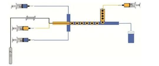 已有的研究結(jié)果表明微尺度氣液液三相流具有獨特的流動、傳遞及反應(yīng)規(guī)律,在化學(xué)反應(yīng)、材料制備、萃取分離等多個領(lǐng)域均有著重要的應(yīng)用。在化學(xué)反應(yīng)領(lǐng)域,Onal等曾以氫氣作為氣相,不飽和醛類為連續(xù)相,催化劑的水溶液為分散相,在該體系中系統(tǒng)研究了不飽和醛類選擇性加氫的過程并揭示了反應(yīng)動力學(xué)。在材料制備領(lǐng)域,Lee等曾以氮氣作為內(nèi)相,含有硅納米顆粒的甲苯溶液作為中間相,連續(xù)相為2%PVA水溶液。在該體系中隨著雙乳液油相中甲苯溶劑的揮發(fā),逐漸形成了硅納米顆粒堆積殼層的中空微球。