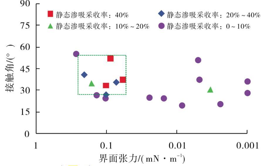 圖3界面張力-潤濕性-靜態滲吸采收率關系