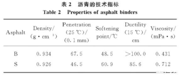 純度1)99.5%的無水乙醇(分析純);70#基質(zhì)瀝青(B);SBS改性瀝青(S);5種表面活性劑:阿科瑪Cecabase 945(W1)、阿科瑪Cecabase Bio 10(W2)、諾力昂Rediset LQ-1102C(W3)、上海龍孚LYE-WMA(W4)、美德維實(shí)偉克M-1(W5),表面活性劑W1——W5摻量分別為瀝青質(zhì)量的0.4%、0.4%、0.6%、0.6%、0.6%.瀝青的技術(shù)指標(biāo)見表2,其中:黏度采用布式旋轉(zhuǎn)黏度法測(cè)試,取剪切速率為25s-1時(shí)的黏度值;基質(zhì)瀝青、SBS改性瀝青的密度與黏度的測(cè)試溫度分別為135、165℃。