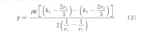 將Δh代入表面張力計(jì)算公式,得到式(2):