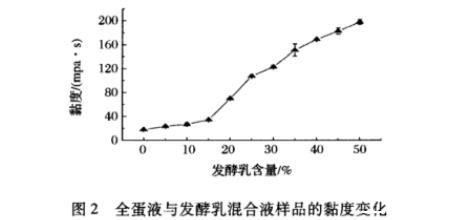 圖2全蛋液與發酵乳混合液樣品的黏度變化