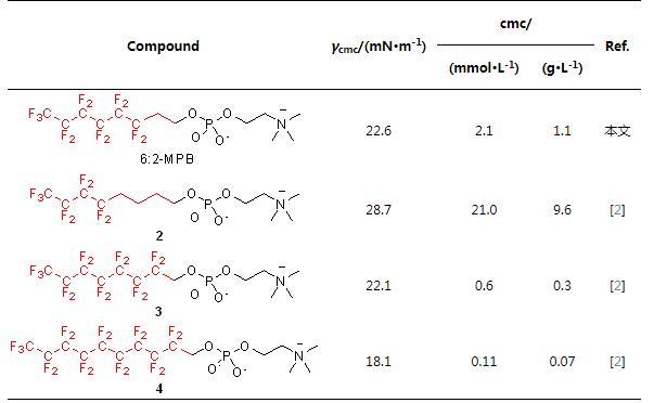 表3磷酸膽堿氟表面活性劑的表面活性數據