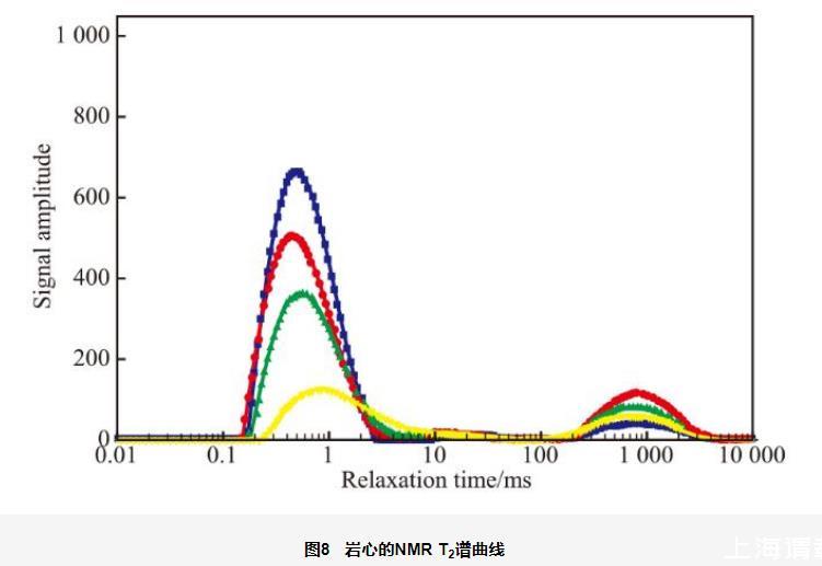 5)經復合表面活性劑體系處理后,巖心含水飽和度由77.4%降至8.10%,巖心含油飽和度由66.7%降至11.25%;巖心中多孔介質經復合體系處理后,氣相滲透率由水侵污染后的23.09×103μm2恢復到53.59×103μm2,由油侵污染后的26.06×103μm2恢復到52.21×103μm2,由液侵污染后的30.20×103μm2恢復到54.98×103μm2。通過巖心自發滲吸實驗、NMR實驗以及巖心流動實驗得出復合體系能夠有效預防巖心液侵和有效解除巖心液侵傷害。