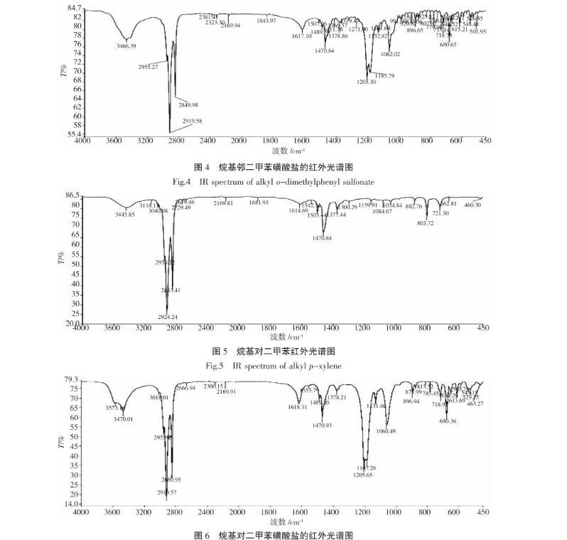 圖2烷基間二甲苯磺酸鹽紅外光譜圖