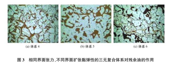 3.1.3界面張力、界面擴張模量均不同的三元復(fù)合體系對殘余油的作用