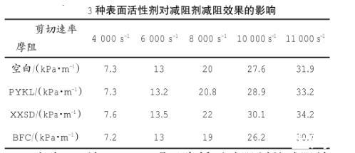 表3 3種表面活性劑對(duì)減阻劑減阻效果的影響