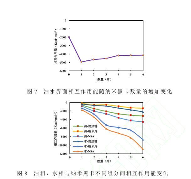 圖8油相、水相與納米黑卡不同組分間相互作用能變化
