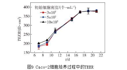 圖9 Caco-2細胞培養(yǎng)過程中的TEER
