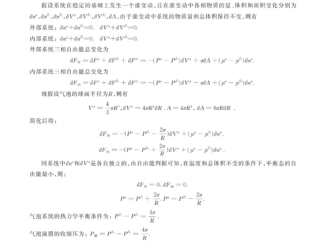 假設系統(tǒng)在穩(wěn)定的基礎上發(fā)生一個虛變動,且在虛變動中各相物質(zhì)的量、體積和面積變化分別為on,ne,onV",oi,a,A,由于虛變動中系統(tǒng)的物質(zhì)量和總體積保持不變,則有