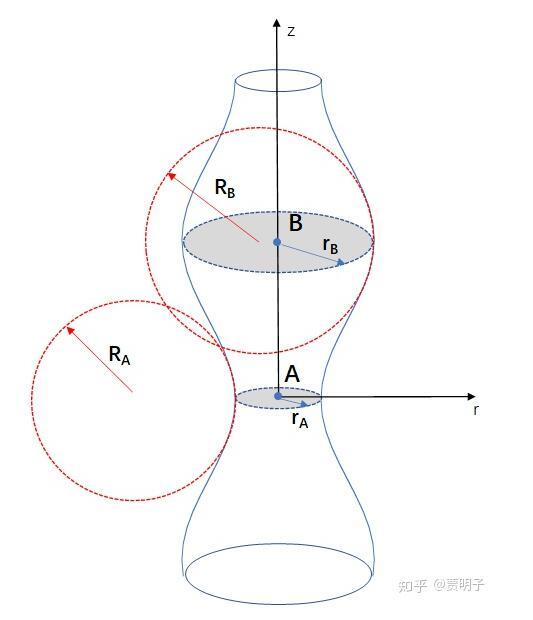 在A點(diǎn),z方向上產(chǎn)生了負(fù)曲率(半徑RA),而r方向上,由于半徑變小,曲率變大。也就是說,A點(diǎn)上的曲率變化產(chǎn)生了兩個效果:
