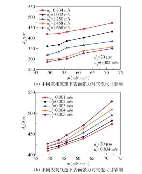 在表觀氣速ug=0.1-0.3 m/s范圍內(nèi),表面張力對氣泡尺寸的調(diào)控作用呈現(xiàn)非線性特征。當(dāng)ug>0.2 m/s時,高表觀氣速引發(fā)的慣性力(Fg=πd2ρgug/4)增強,部分抵消了低σ?guī)淼某叽鐪p小效應(yīng)。實驗數(shù)據(jù)顯示,在ug=0.3 m/s條件下,σ從72降至49 mN/m僅使dav減少18%,較ug=0.1 m/s時的32%減幅顯著降低。
