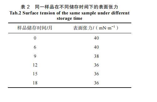 表2同一樣品在不同儲(chǔ)存時(shí)間下的表面張力