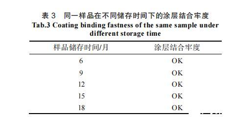 表3同一樣品在不同儲(chǔ)存時(shí)間下的涂層結(jié)合牢度