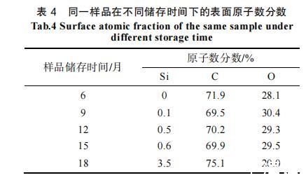 表4同一樣品在不同儲存時間下的表面原子數分數
