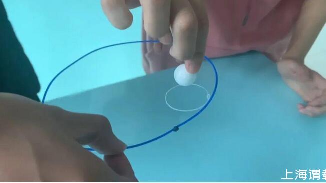 四、再次放入棉線圈,然后扎破內部泡泡,嘗試將棉線圈拉出來,會發現泡泡薄膜還是沒有破。