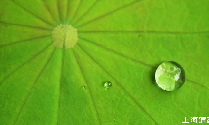 荷葉表面極小尺度的凸起和凸起之間的極大密度導致了水滴在荷葉表面僅僅能夠呈現出來液-氣交界面,固體-液體交界面就被忽略掉了。于是在表面張力的作用下荷葉上的小水滴也就呈現出完美的球狀。