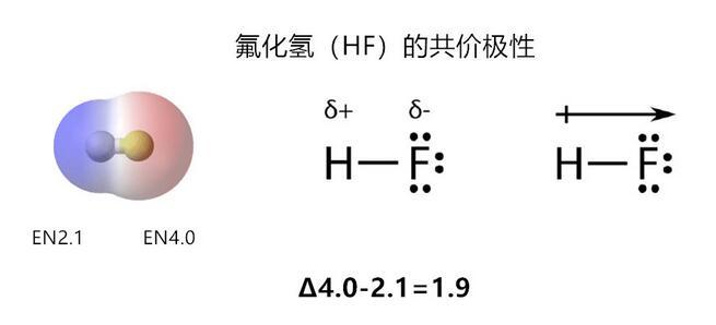 當電負性差異的值為0~0.4之間,共價是弱極性的,分子對外依然顯示非極性的特征;