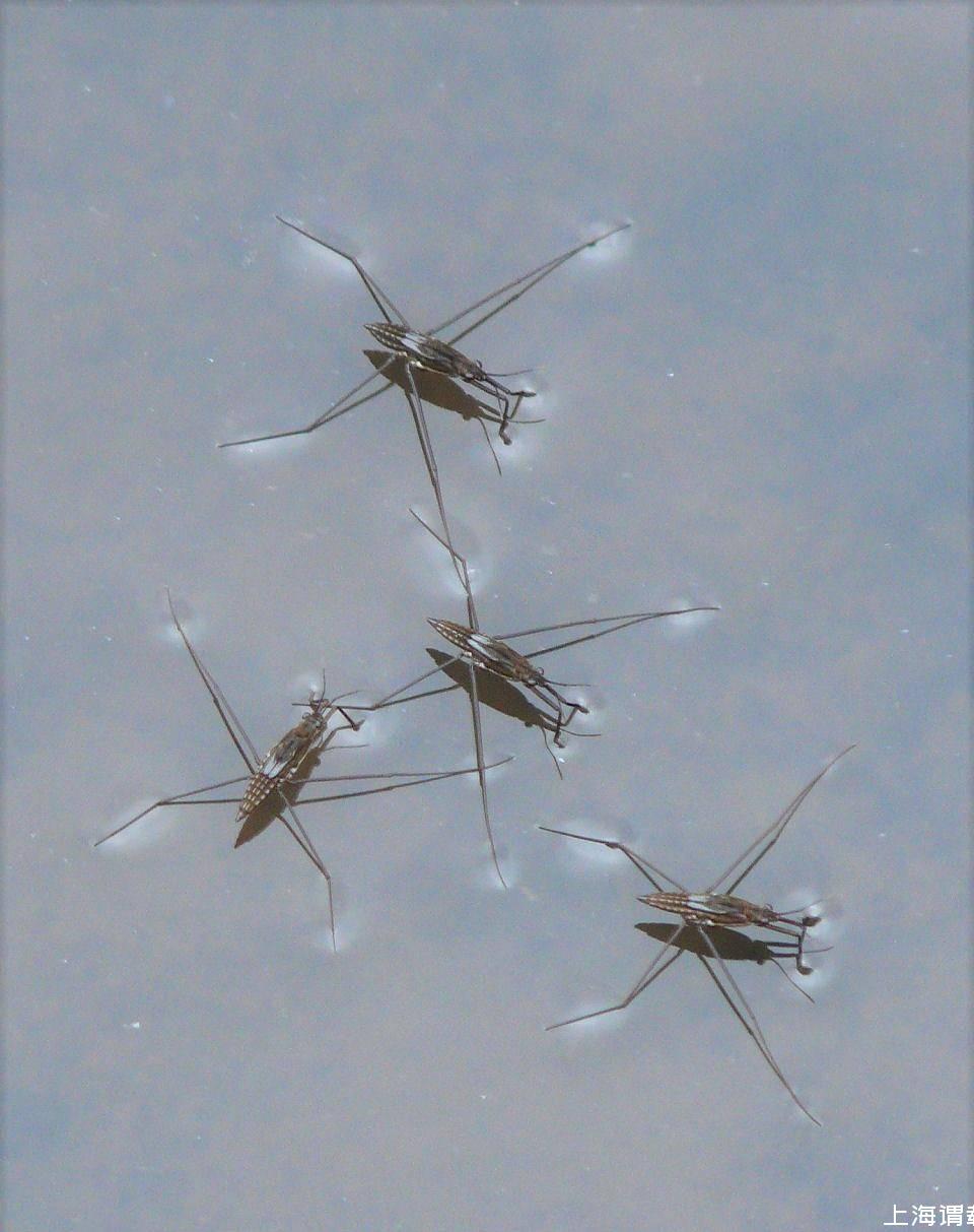 有一種叫水黽的昆蟲,它就依靠長長的腿在水面行走如飛。
