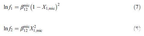這些結(jié)果可以通過使用規(guī)則溶液理論(RST)得到證實(shí),該理論不僅表征了混合膠束中的相互作用參數(shù)bmic 12,還解釋了偏離理想狀態(tài)的原因[20]。根據(jù)RST,混合膠束中的活性系數(shù)表示如下:
