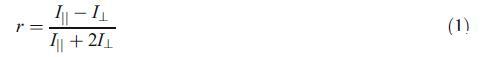 所有熒光各向異性測量均在25.0±0.2°C下使用來自美國的熒光偏振儀器系統(tǒng)(Beacon-2000)進(jìn)行。該儀器配備了100W鹵素?zé)糇鳛榧ぐl(fā)源。羅丹明B(RB)作為熒光探針,其濃度保持在1μM。我們還在12mM純表面活性劑濃度下進(jìn)行了10 nM至2μM探針濃度的各向異性測量(數(shù)據(jù)未顯示)。選擇飽和r值(探針完全與膠束結(jié)合)下的探針濃度(1μM)作為實(shí)驗(yàn)條件。純和二元混合物的表面活性劑總濃度為12mM。分別使用570和630nm的激發(fā)和發(fā)射波長測量熒光各向異性。當(dāng)發(fā)射偏振器平行或垂直于偏振激發(fā)方向定向時(shí)?,分別地各向異性是強(qiáng)度差I(lǐng)kI的比率?總強(qiáng)度Ikt2I?如等式1所示: