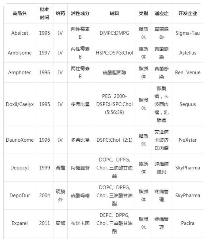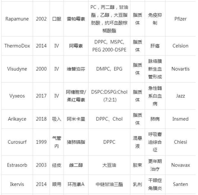 表1已獲批上市的脂質納米粒產品