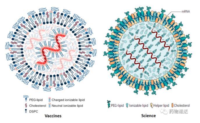 圖2 Vaccines和Science期刊的mRNA-LNP結(jié)構(gòu)示意圖