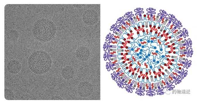 圖6 LNP的電鏡圖和結(jié)構(gòu)示意圖