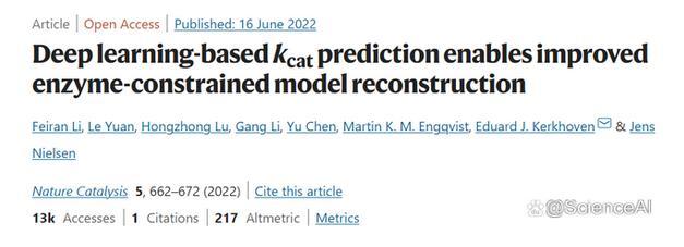 該研究以「Deep learning-based kcat prediction enables improved enzyme-constrained model reconstruction」為題,于2022年6月16日發布在《Nature Catalysis》。