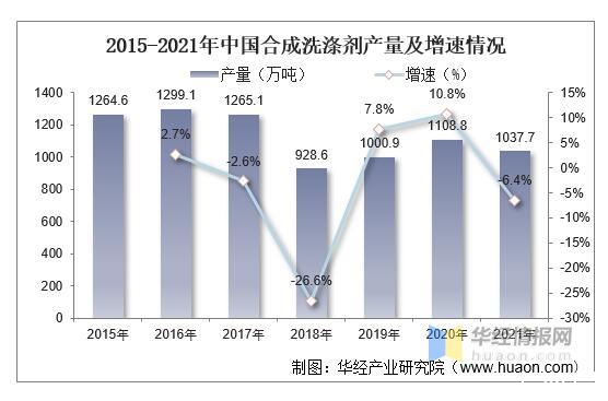 洗滌劑作為表面活性劑最大的下游應用領域,隨著近年來我國環保意識的不斷提升,其產量整體呈現下降趨勢。據資料顯示,2021年我國合成洗滌劑產量為1037.7萬噸,同比下降6.4%。