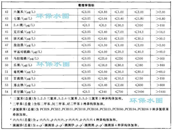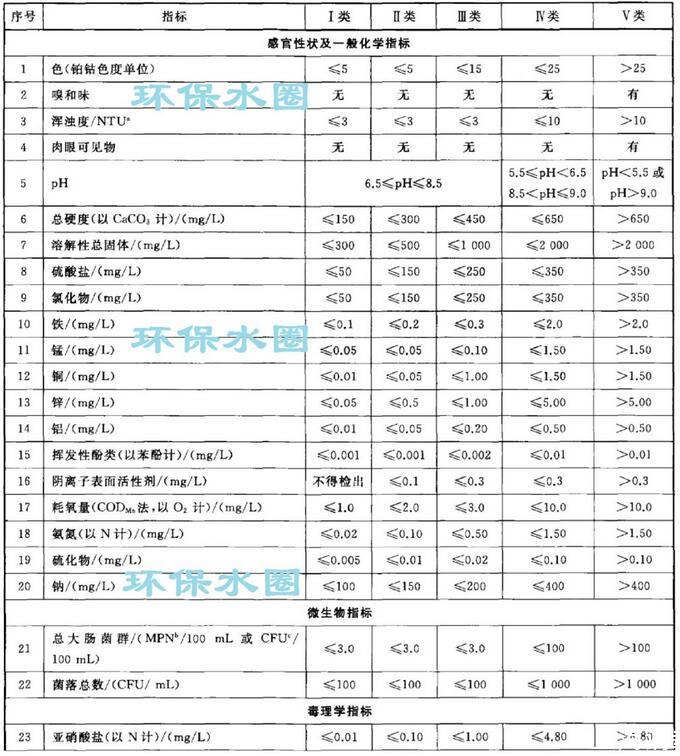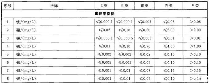 依據我國地下水質量狀況和人體健康風險,參照生活飲用水、工業、農業等用水質量要求,依據各組分含量高低(pH除外),分為五類。