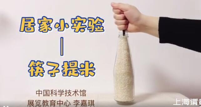 將筷子插入一個裝滿大米的瓶子中,發(fā)現一根筷子就能提起整瓶大米,這是由于筷子與米之間以及米與米之間的摩擦力很大造成的。