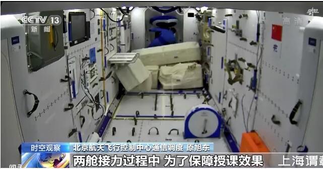 北京航天飛行控制中心通信調(diào)度原旭東:我們采用了問天艙和天和艙兩艙切換跟蹤的模式,每個艙都可以下傳同樣的攝像機(圖像),包括話音。通過兩艙的話音級聯(lián)、圖像下傳,確保整個(太空授課)圖像話音流暢。兩艙接力過程中,為了保障授課效果,我們也是精心設(shè)計,再結(jié)合授課腳本進行圖像話音切換。