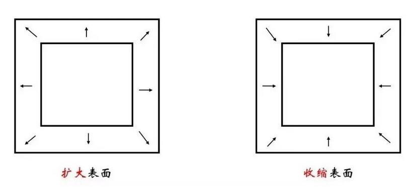 油墨不溶于水,當(dāng)它接觸到水的一瞬間就會立刻擴(kuò)散開來。油墨的擴(kuò)散會帶來水表面上面積的增大,如下圖所示。而擴(kuò)大表面就會給船帶來一定力的作用,從而造成船的運(yùn)動。