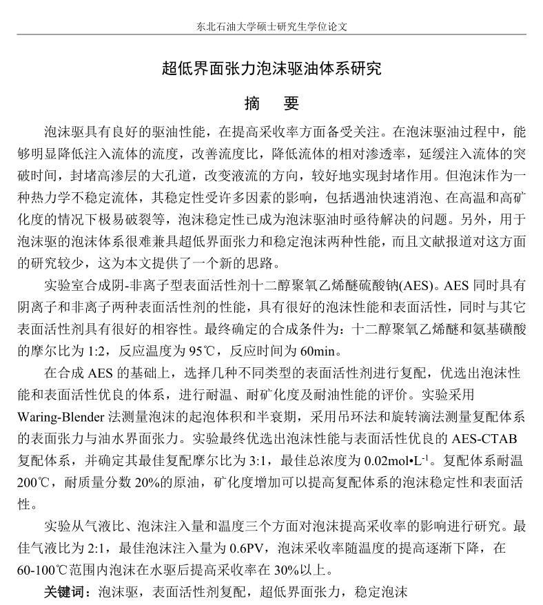 > 超低界面張力環保型高溫高鹽油藏的驅油表面活性劑配方比例及制備(一)