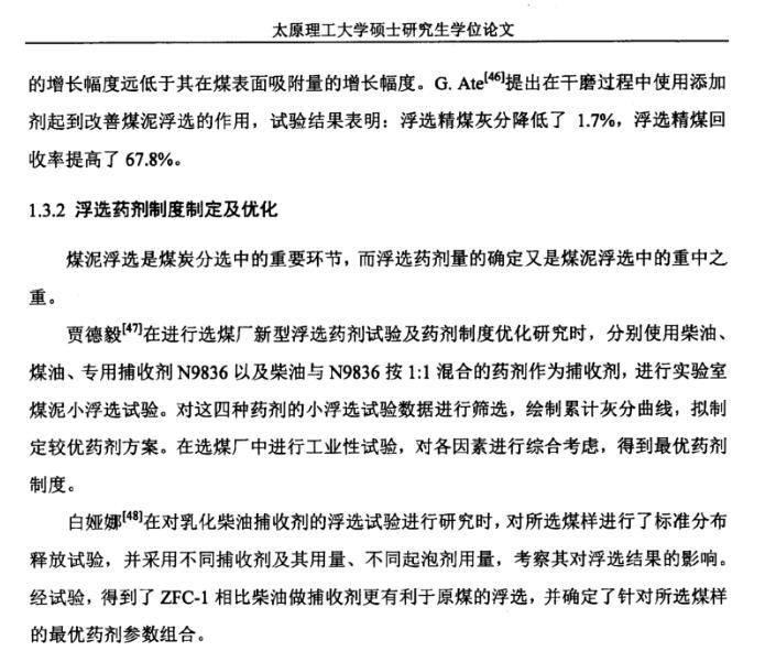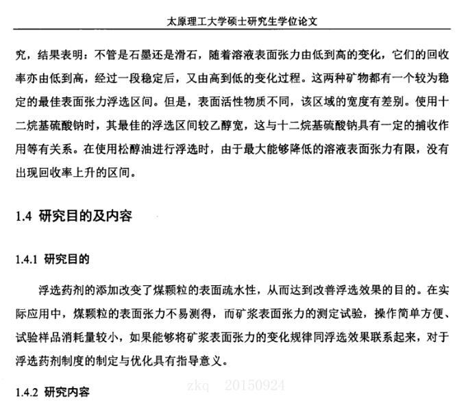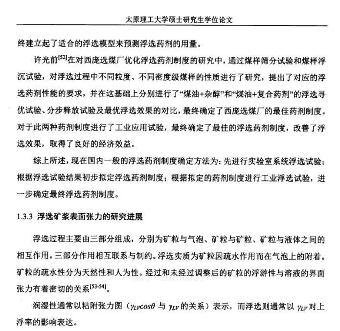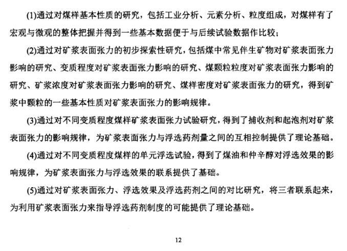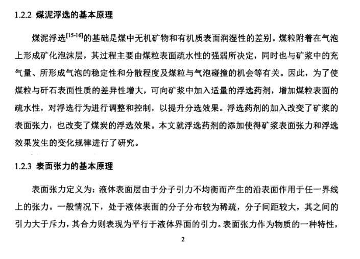 【摘要】:隨著浮選入料中高灰細泥含量的逐漸增高,浮選效果惡化的問題越來越突出。煤泥浮選是煤炭分選中的重要環(huán)節(jié),合理的浮選藥劑制度是實現(xiàn)煤泥高效浮選的關(guān)鍵因素。本文就浮選效果與礦漿表面張力的關(guān)系進行了研究,對試驗煤樣進行了工業(yè)分析、元素分析、粒度分析及XRD分析,發(fā)現(xiàn)煤樣中小于0.045mm粒級含量較多,且灰分較高,易泥化。煤樣中含有的伴生礦物種類基本相同,主要包括高嶺土、蒙脫石、石英及黃鐵礦四種。