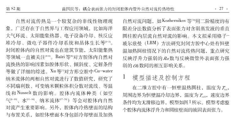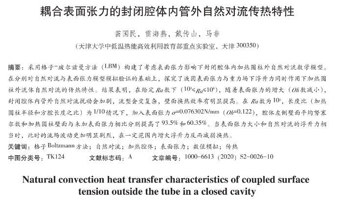 耦合表面張力的封閉腔體內(nèi)管外自然對(duì)流傳熱特性