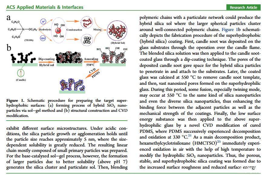 當液體的表面張力發生變化時,它在普通固體表面的潤濕性也會隨著變化。然而,關于這一規律以及尤其是在超疏水表面的表現的研究很少。最近,協同創新中心PI-6管自生老師課題組研究生王研等人利用上述的表面張力和潤濕性的響應關系首次將透明超疏水涂層應用在探測液體表面張力方面,為拓寬多功能超疏水涂層的應用提供了一個新的思路,相關論文已被ACS applied materials&interfaces發表。研究表明,隨著有機物水溶液中有機物體積分數上升,溶液的表面張力相應地下降,溶液液滴在制備的超疏水涂層的接觸角也逐漸下降,此稱之為表面潤濕性對表面張力的響應。基于此響應關系,可以通過接觸角估測液體的表面張力以及有機物的濃度。